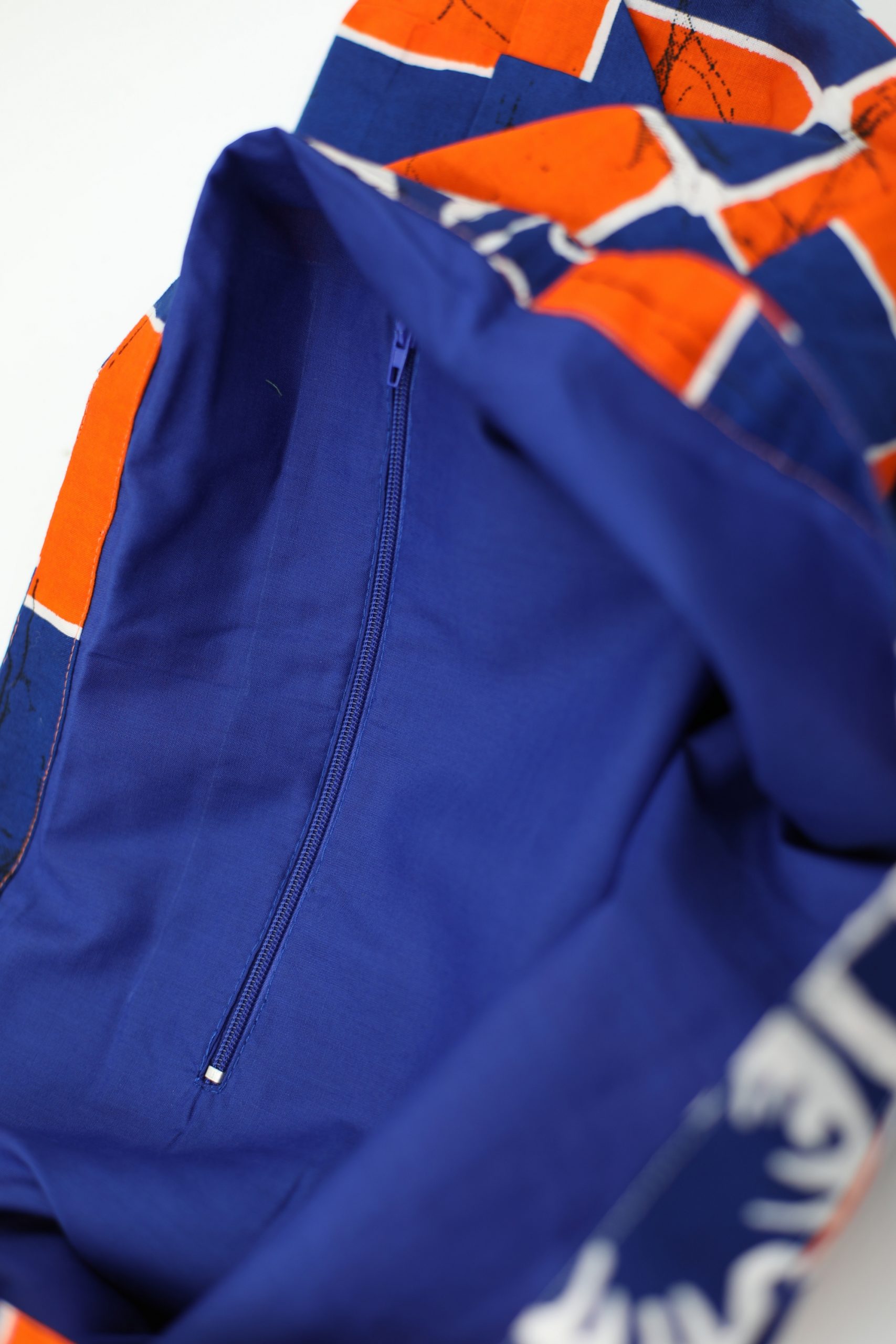 Unikalna, batikowa torba typu tote w oryginalnym połączeniu kolorystycznym – indygo i pomarańcz. Torba została ręcznie uszyta w Senegalu przez uczennicę szkoły zawodowej Foyer Maria Goretti. Torba jest bardzo wytrzymała – świetnie sprawdzi się podczas zakupów.