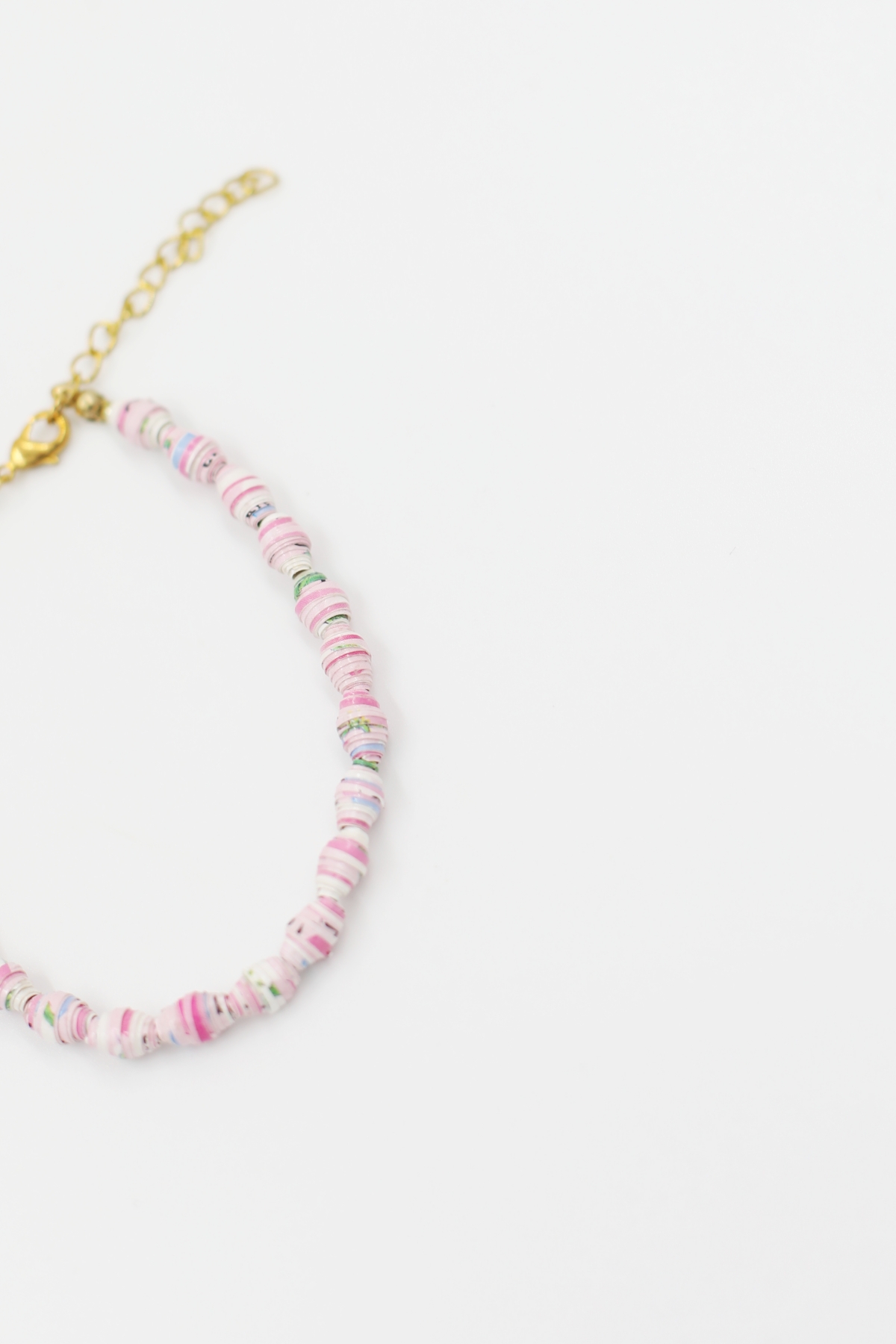 Bransoletka posiada regulowaną długość, koraliki zostały wykonane z papieru.